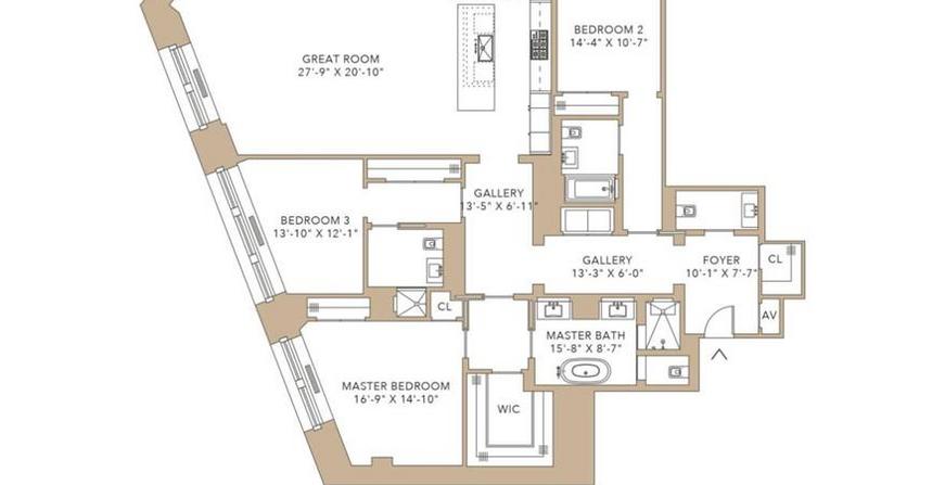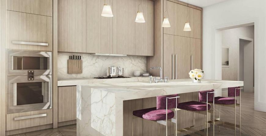 This magnificent 3 bedroom, 3. 5 bathroom home boasts grand proportions with 2, 693 square feet of space, 3 exposures and a wonderful view of Broadway. Oversized windows throughout, coupled with a design sensibility that takes the best of contemporary and pre-war styles makes for a layout that is a refreshing fusion of uptown classic and downtown loft. The 27 x 20 great room has eight windows which flood the interior with light while the adjoining eat-in kitchen features top of line Gaggenau appliances and a huge marble topped center island thereby creating the perfect space for entertaining. A gracious entry foyer and traditional gallery provide separation between the living space, bedrooms and bathrooms. Additional features include a powder room, generous closets, multi zoned heating and . . .